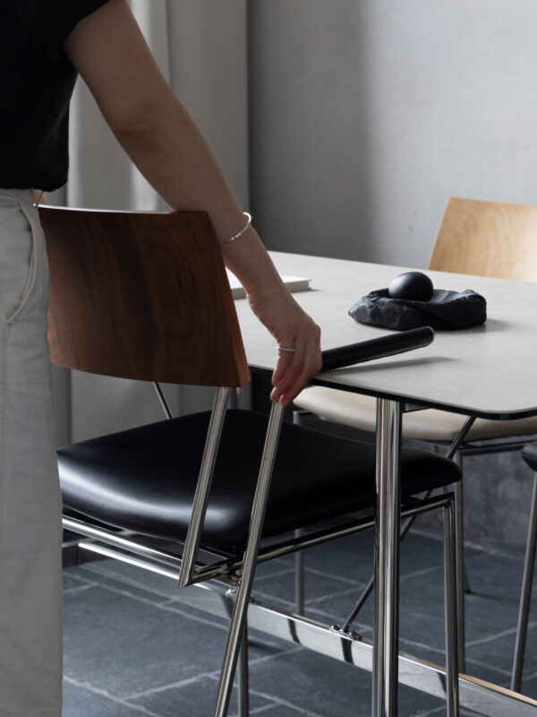 The table top is crafted from rubberwood finger-jointed boards and finished with an white oak veneer, reducing the risk of cracking or distortion that can happen with solid wood. Beneath it sits a sturdy 5mm stainless steel base, providing reliable stability and a clean, minimalist look.