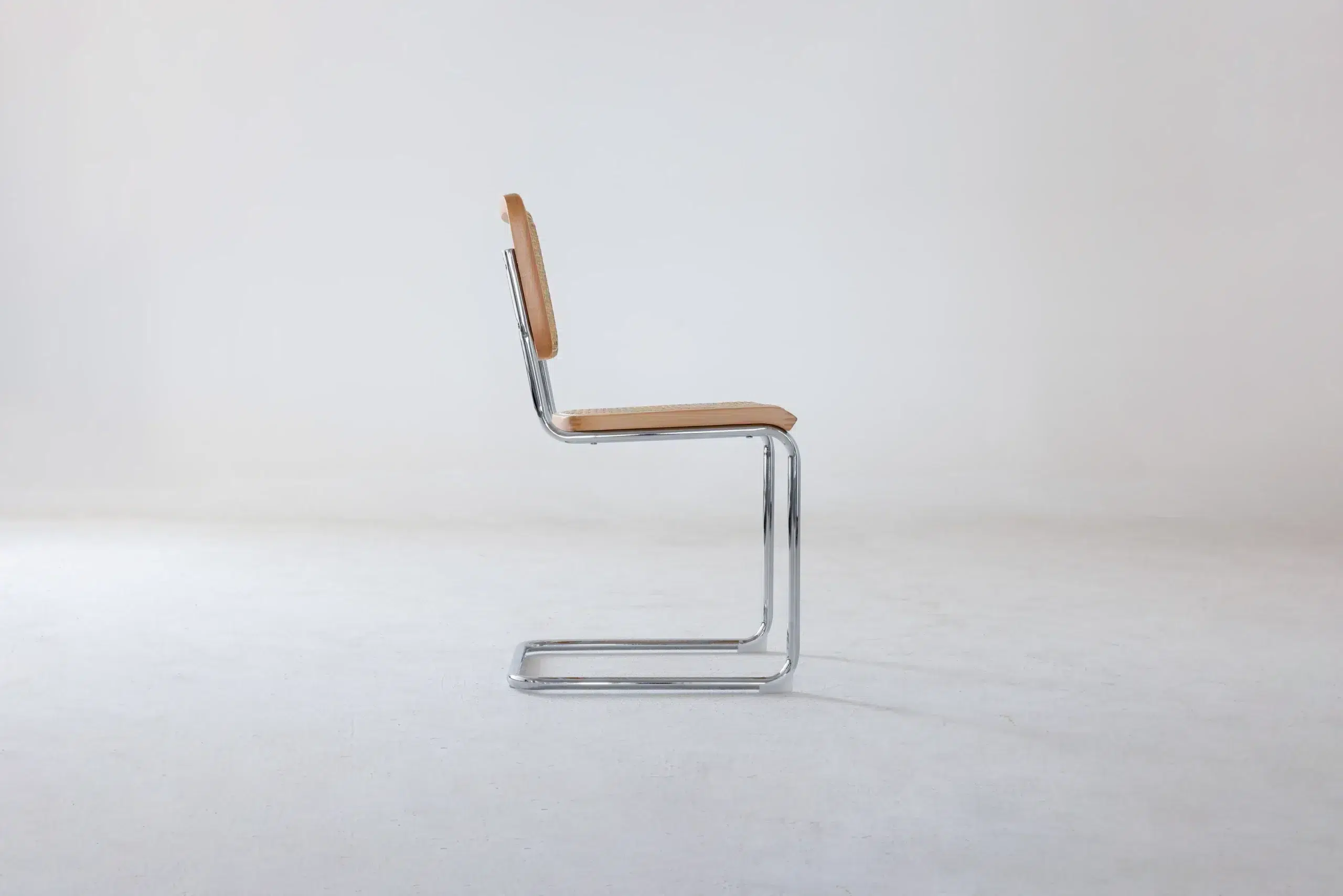 The designer Chair showcases a seamless blend of chrome-plated steel tubing and natural materials. The use of cantilevered steel creates a floating effect, providing not only visual elegance but also enhanced comfort through its slight flexibility. The combination of these materials and the craftsmanship involved ensures each piece remains true to Breuer’s original vision of accessible modern design, emphasizing both form and function.