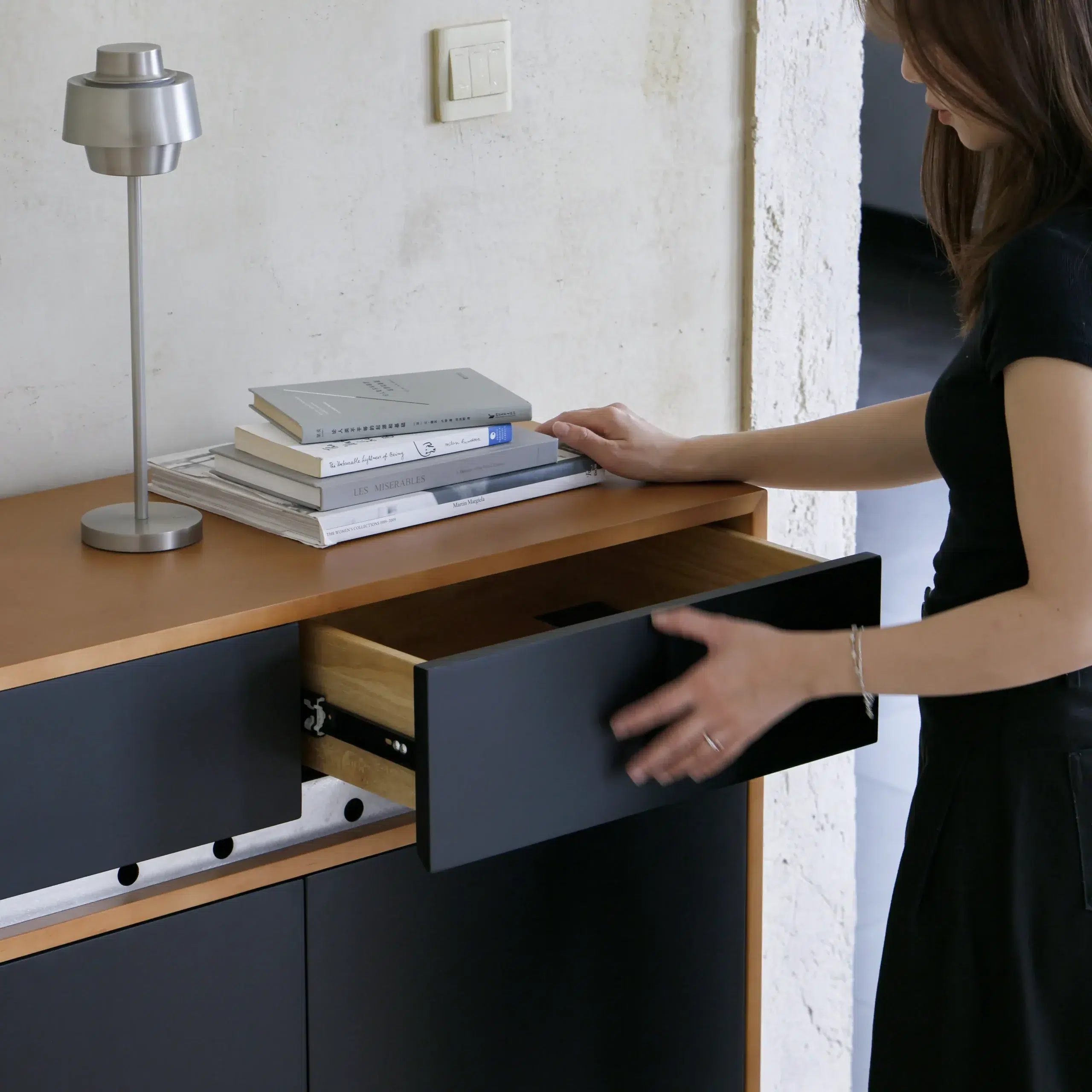 This modern timber cabinet balances style and practicality, making it ideal for everyday storage in modern interiors.