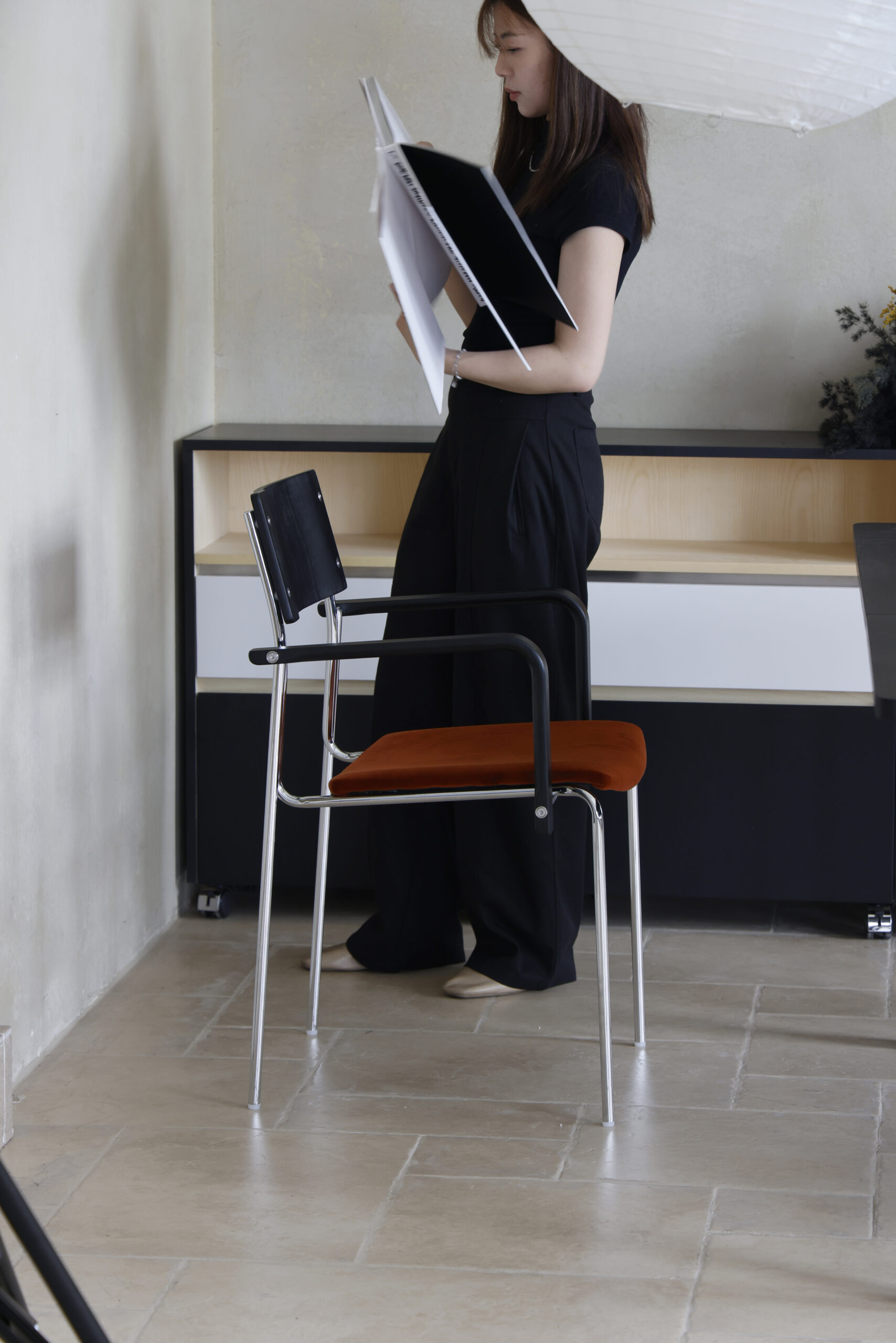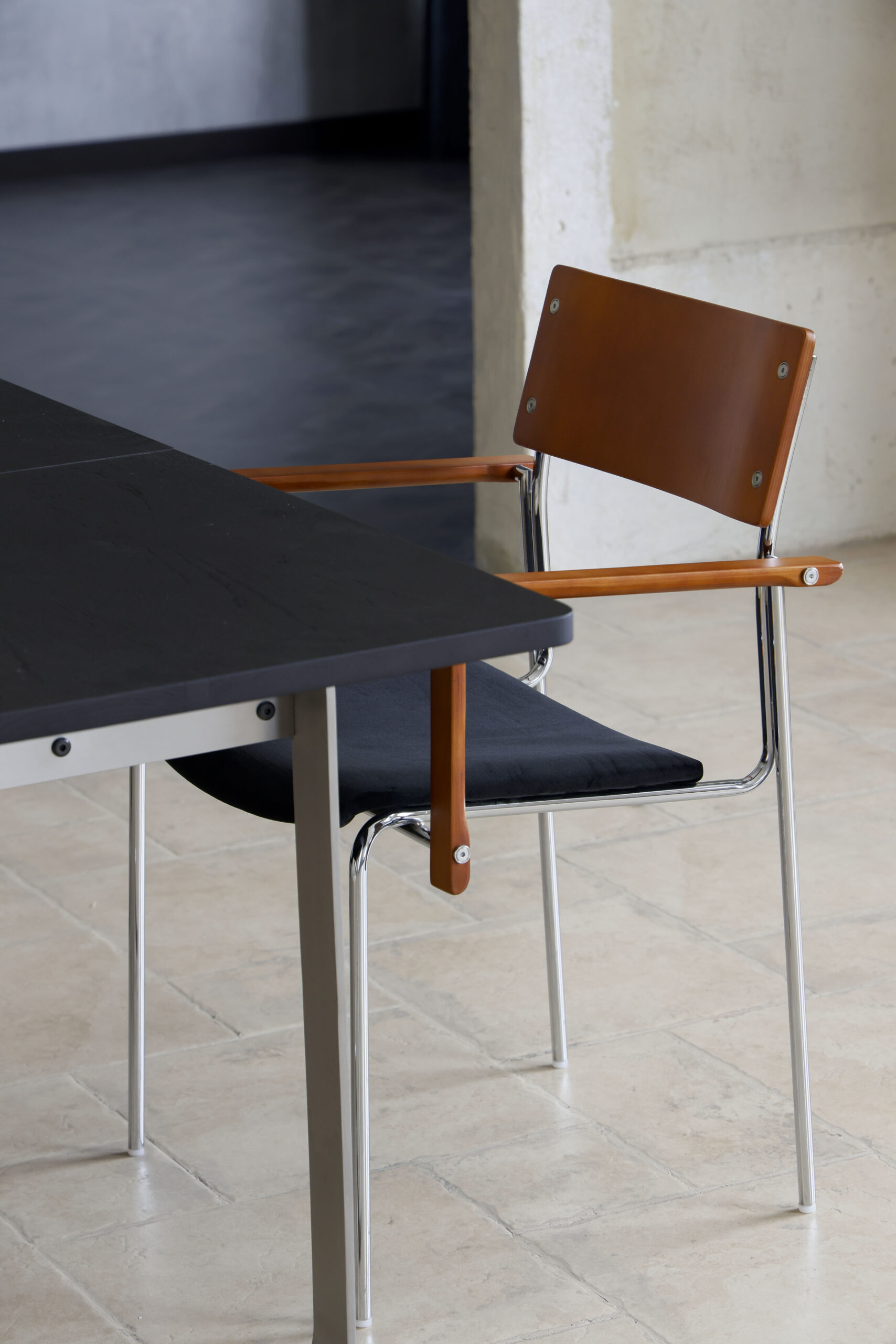 This designer dining chair is a standout example of mid century design brought into the modern home. The frame is crafted from electroplated metal with a smooth silver finish, giving the chair a clean, luxurious presence that echoes classic Bauhaus style. Its wooden components use a multi layer solid wood lamination process, finished with beech veneer to bring warmth and visual texture.
