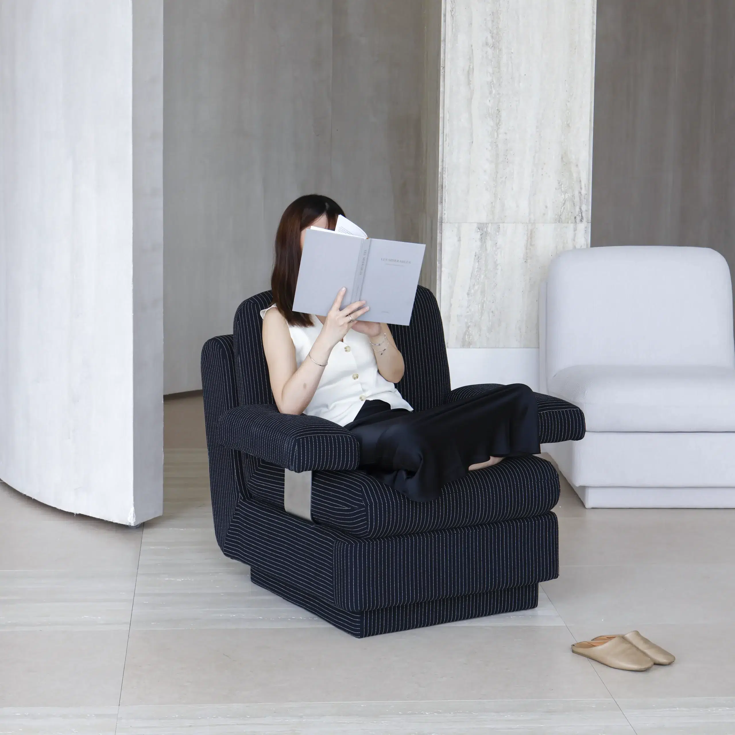 This small designer sofa keeps things relaxed and versatile, adapting effortlessly to a wide range of spaces. Its modular structure makes it ideal for everything from single-person reading corners to larger entertainment rooms. Even the armrests are detachable, giving you the freedom to configure the sofa to suit your home and the way you like to unwind.