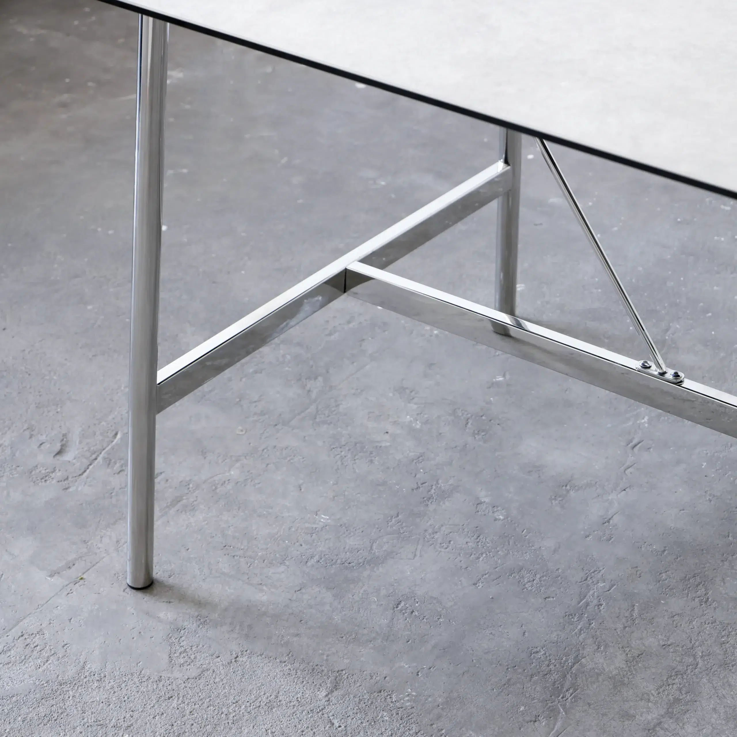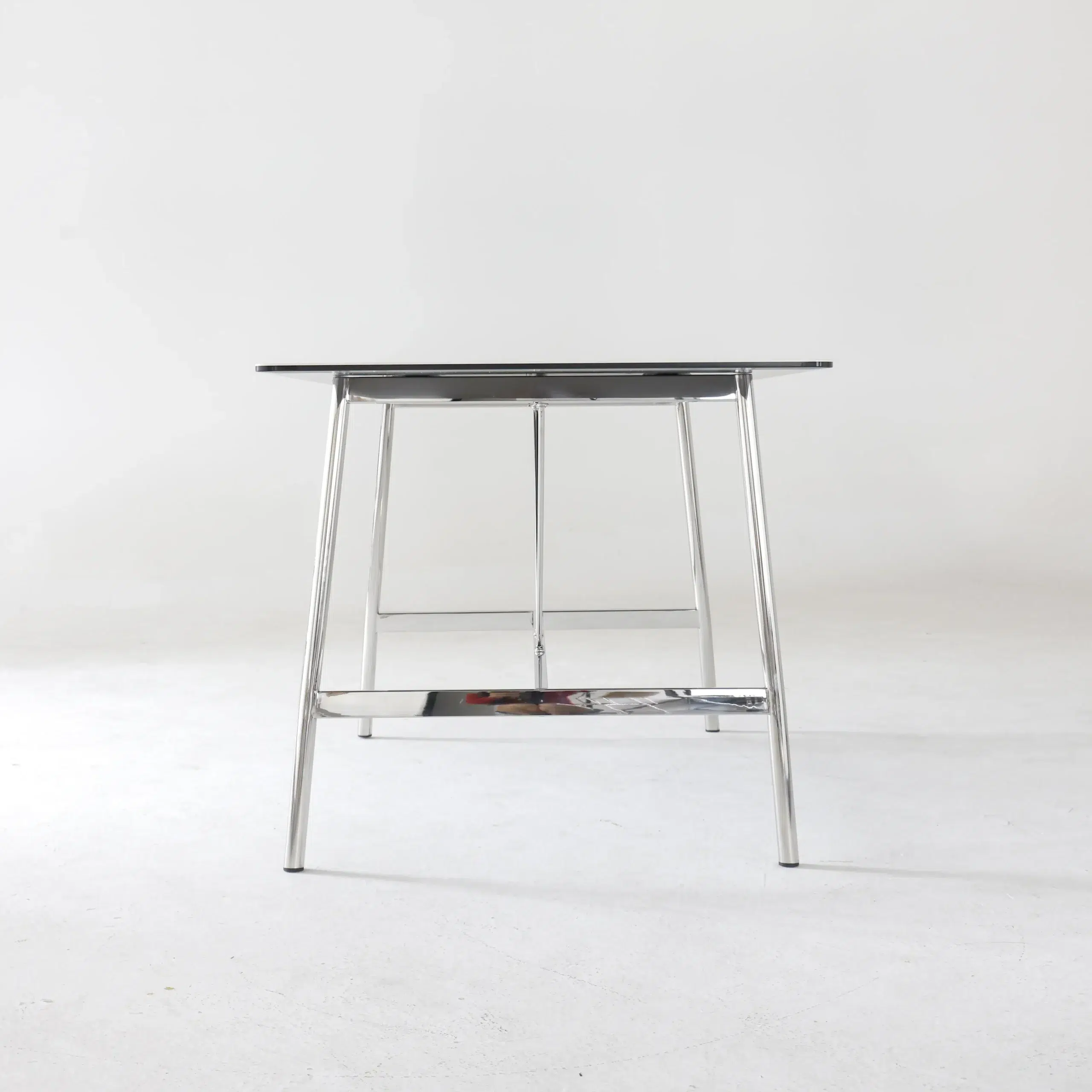 The stainless steel legs add a cool, modern edge, contrasting softly with the textured stone-look veneer. This combination creates a unique visual tension that reflects the clean, restrained character of modern minimalism. At the same time, the materials work together to express a quiet harmony between nature-inspired finishes and contemporary technology.