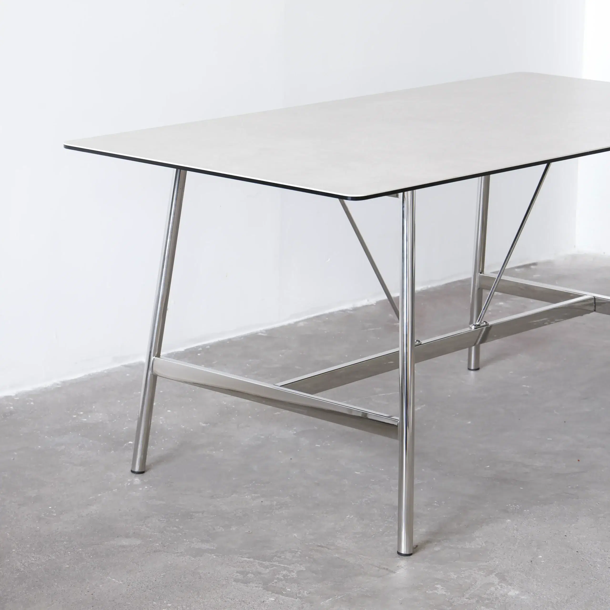 This designer dining table introduces a fresh porcelain-inspired aesthetic with a focus on durability and refined tactile appeal. The tabletop is made from premium 3mm ceramic, delivering outstanding stain resistance and scratch protection while offering a smooth, silk-like finish that feels elegant and elevated.