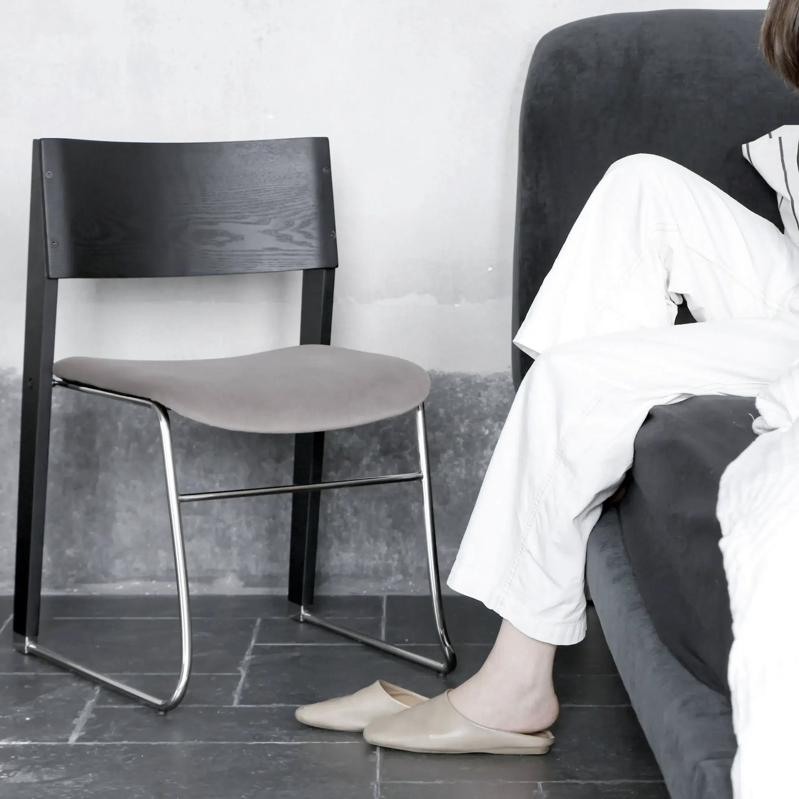 A modern designer dining chair that blends vintage charm with contemporary elements. Available in two colours, it pairs effortlessly with different interior styles. The combination of solid wood and stainless steel gives it a balanced, durable construction that suits both everyday dining and stylish entertaining.
